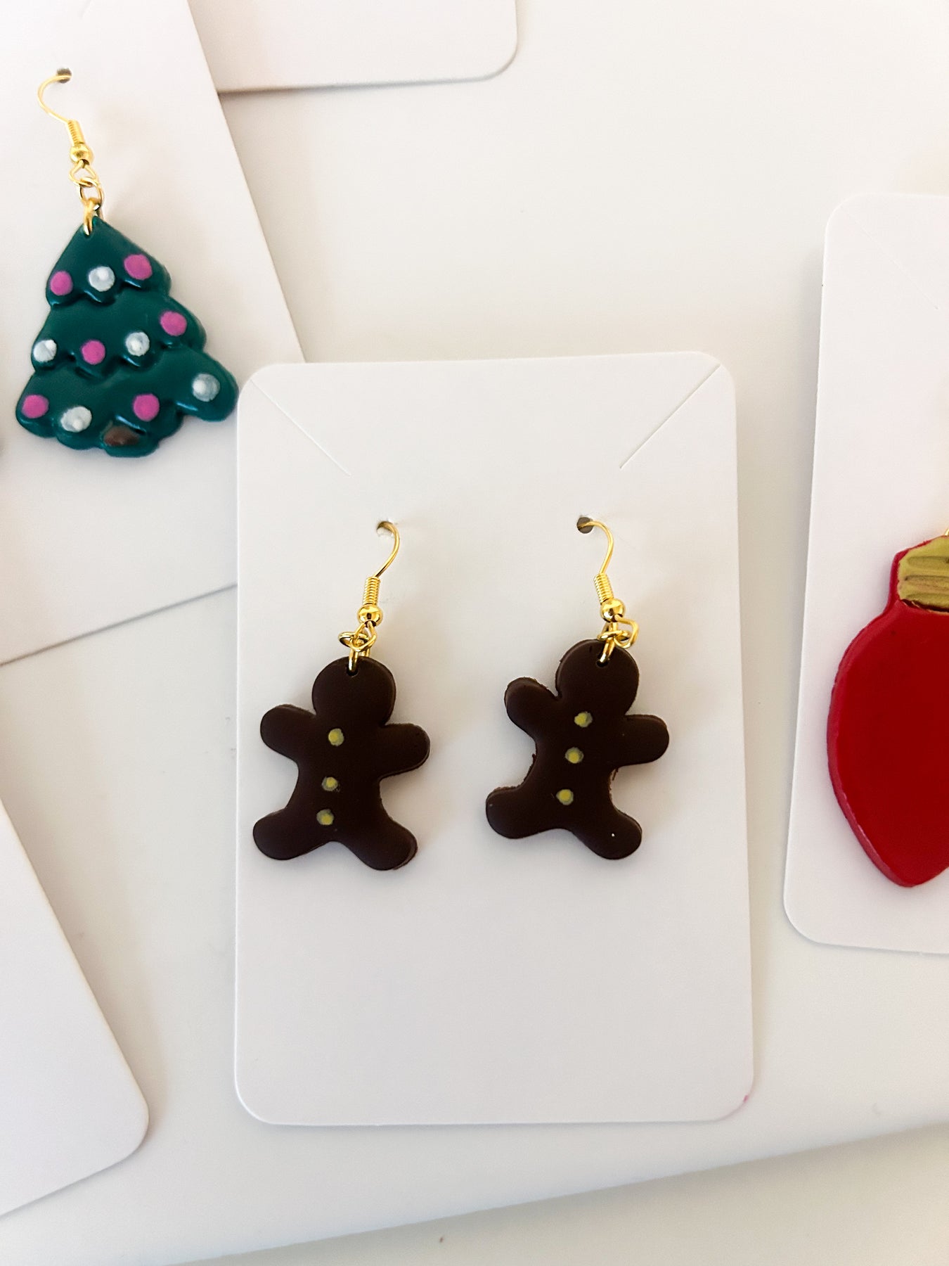 These are handmade & painted by me! They are ultra lightweight & absolutely adorable. Let me know if you have any questions or custom requests! These earrings are on a gold hook back.