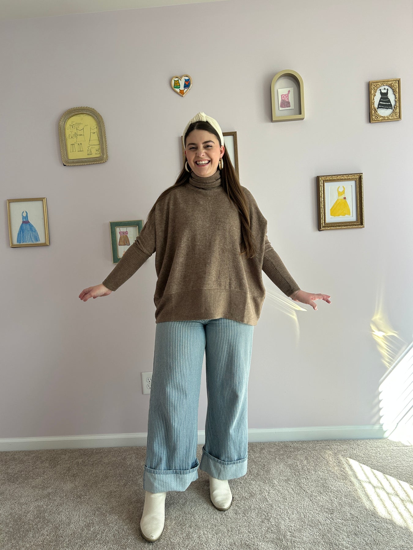 This ultra soft sweater is such a great thing to have in your closet for cool days. It has a longer fit & it true to size & on the roomy side. So comfy, you’ll love it with leggings or denim!